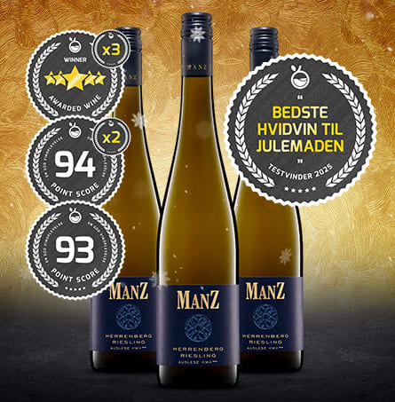 Vores Necto 2 Riesling Feinherb er testvinder 2024 for "Bedste hvidvin til julemaden". Igen i år 2025 vandt vores egen favorit Manz Oppenheimer Herrenberg Riesling Auslese.